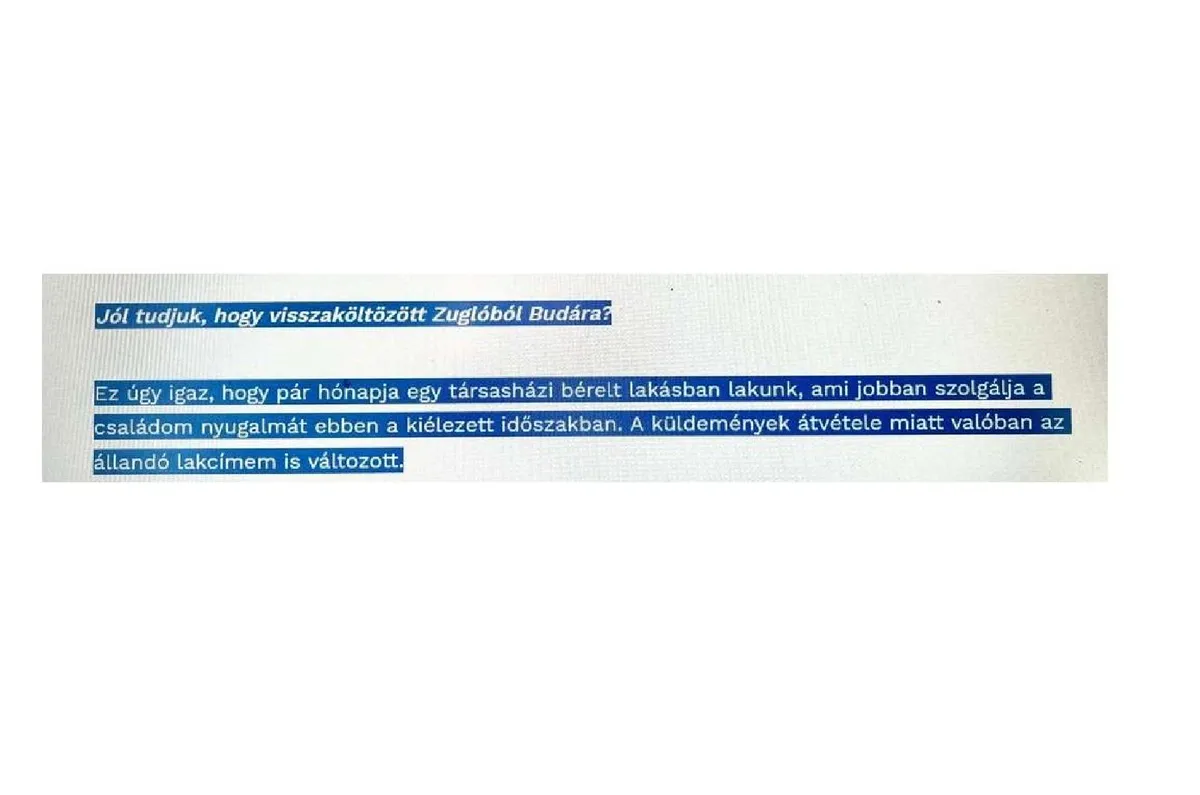 „Karácsony Gergely és családja a tavalyi év közepe óta egy II. kerületi bérelt lakásban él. A főpolgármester erről korábban már maga is beszélt a nyilvánosságban, az előválasztás mindkét fordulójában egy II. kerületi szavazóhelyiségben szavazott” – írta a nyomban előrántott Telex megkeresésére a főpolgármester sajtóosztálya. Hozzátették, hogy a főpolgármester és családja egy magánszemélytől bérli az ingatlant.