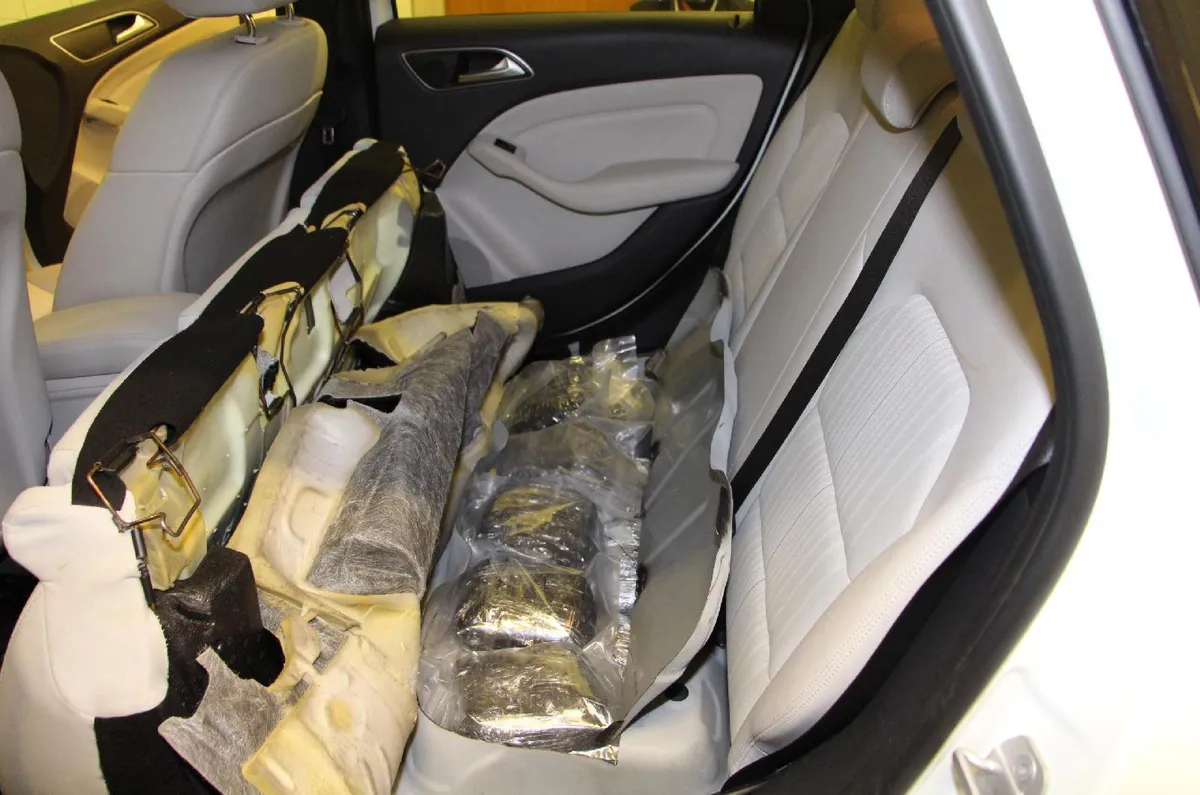 A pénzügyőrök a jármű alvázán és a hátsó üléssornál átalakítás nyomaira bukkantak. Az ülés alatt, textilszőnyeggel letakarva, 46 csomagban, csaknem 44 kilogramm növényi törmelék - a gyorsteszt szerint marihuána - került elő - tudatta az alezredes.