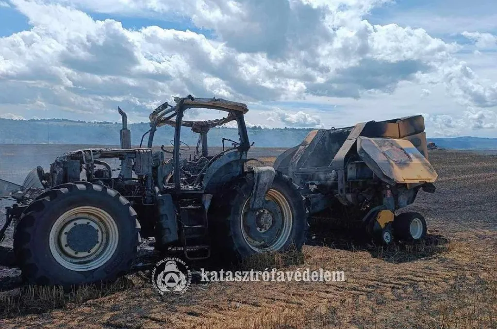Bálázás közben kigyulladt egy traktor és a hozzá tartozó bálázó, és lángra kapott a tarló is Sajólászlófalva külterületén – közölte a Borsod-Abaúj-Zemplén Vármegyei Katasztrófavédelmi Igazgatóság szerdán a hivatalos honlapján.