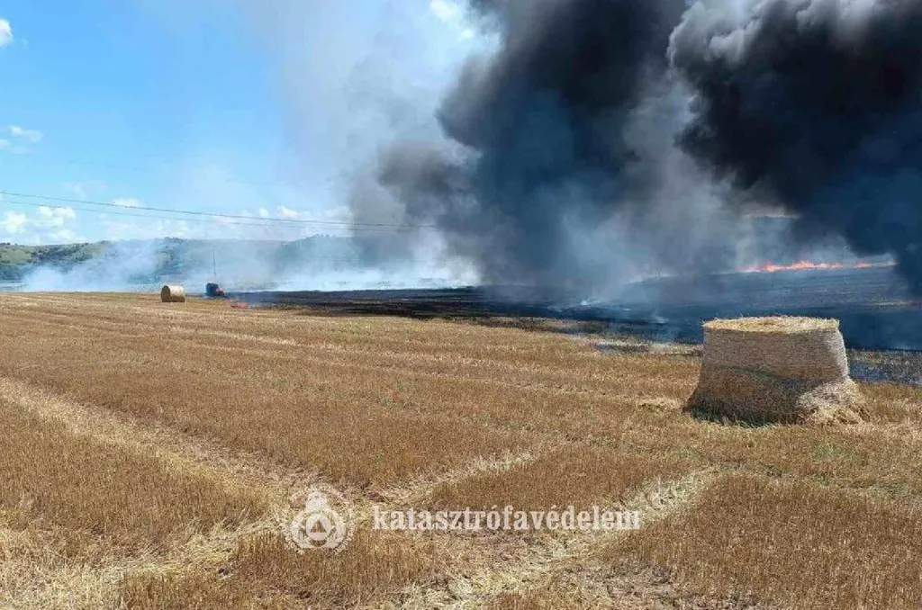 A kazincbarcikai és miskolci hivatásos tűzoltókat riasztották a tűzesethez, a munkagépek tüzének eloltása után a másfél hektáron égő tarlótés körbálákat oltották az egységek két vízsugárral.