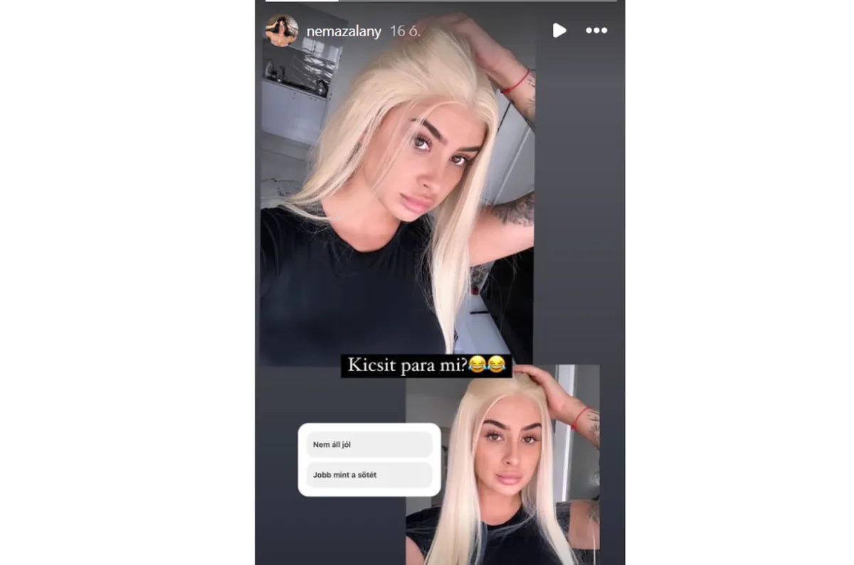 A sötétbarna, szinte fekete hajú szépség ugyanis a minap több képet is közzétett 24 óráig elérhető Instagram-sztorijában, amelyen platinaszőke.