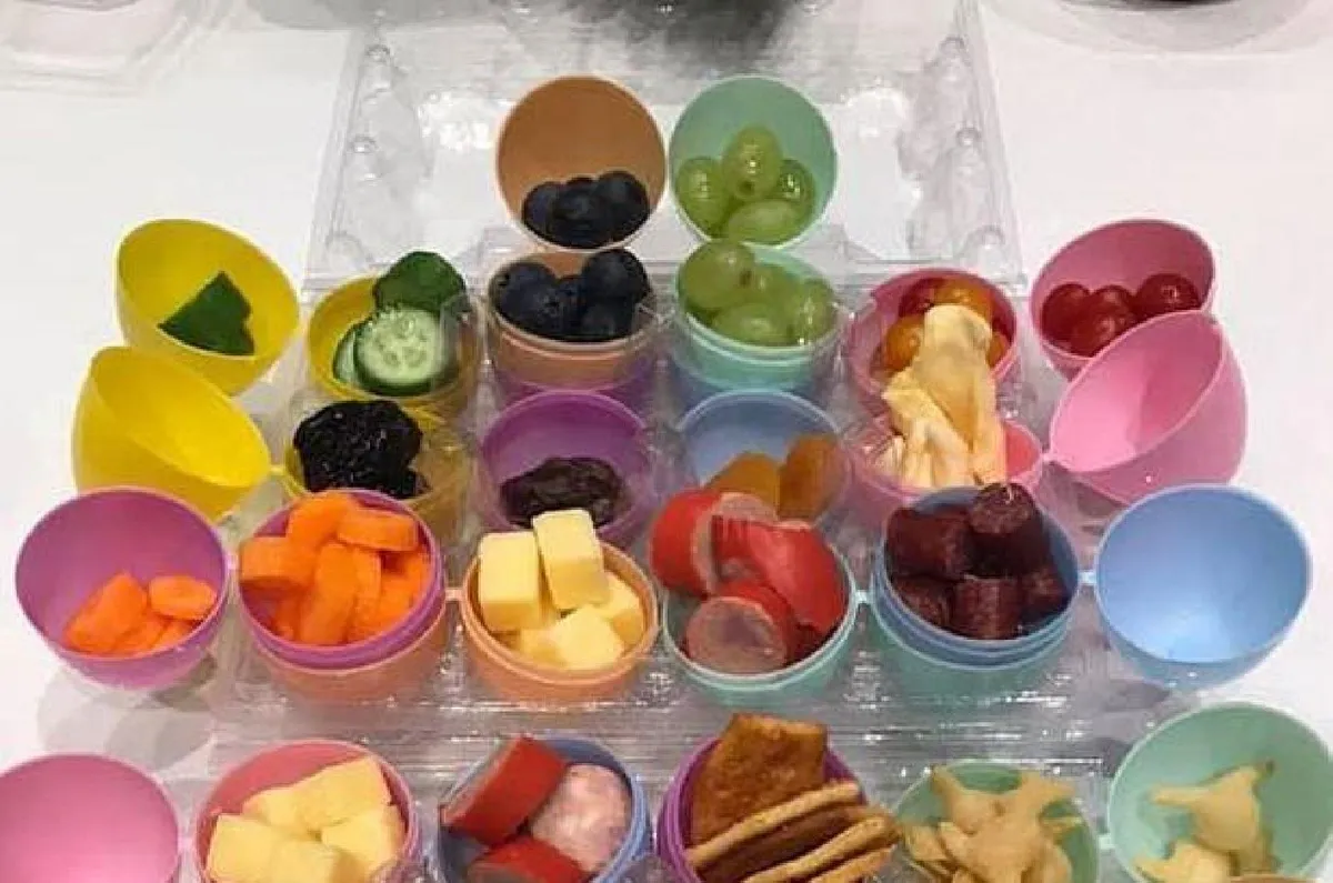Vásárolt két tucat színes tojáshéjat, amiket különféle harapnivalókkal töltött fel, mint keksz, főtt tojás, sajt, áfonya, szőlő, uborka, szalámi, csokitojás és még több finomság. Ezt követően pedig lezárta a dobozt és belecsúsztatta lánya hátizsákjába.