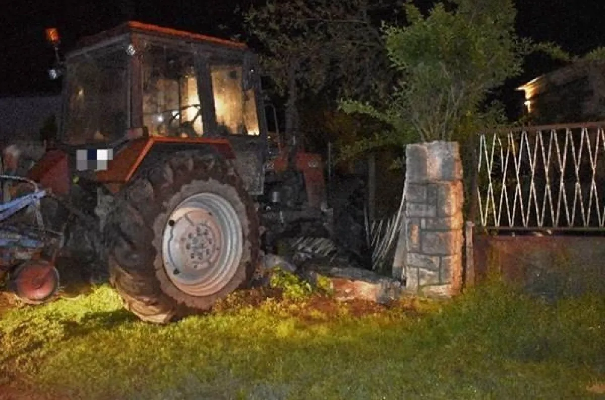 Haladásakor – feltehetően ittassága miatt - a traktort vezető férfi egy ház kerítésének ütközött , amiben emiatt kár keletkezett.