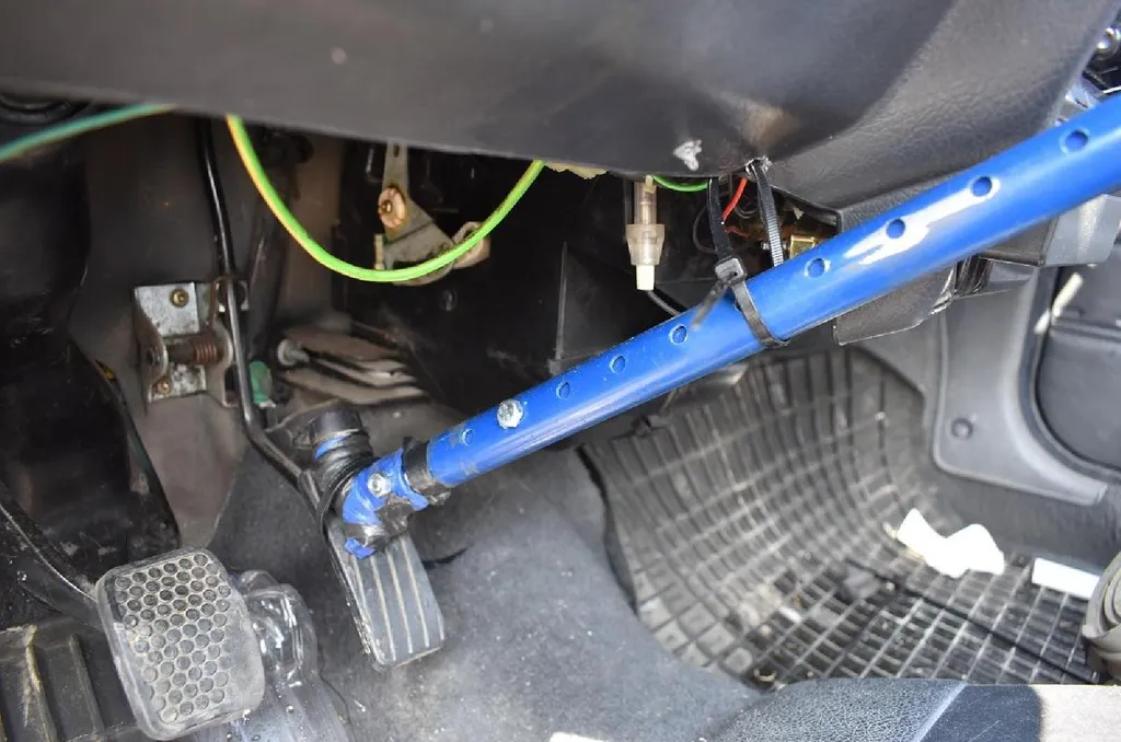 A kocsiban lévő gázpedál egy kék járóbottal volt kitámasztva és rögzítve. A 71 éves sofőr korábban elvesztette a jobb lábát, ezért így oldotta meg a vezetéshez elengedhetetlenül szükséges pedál használatát, annak szakszerű átalakításról azonban nem gondoskodott.
