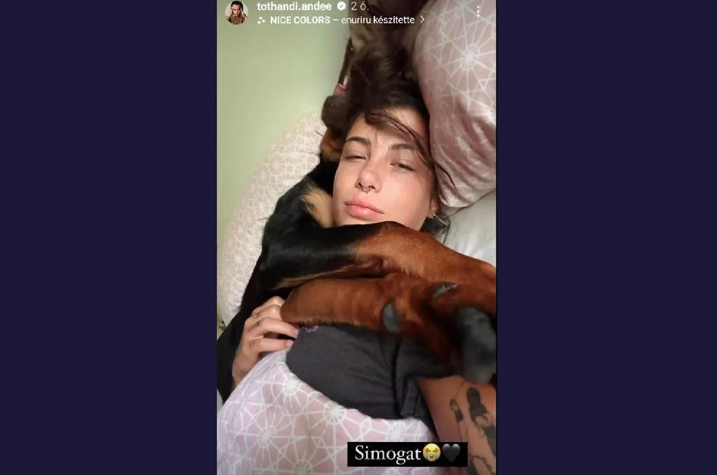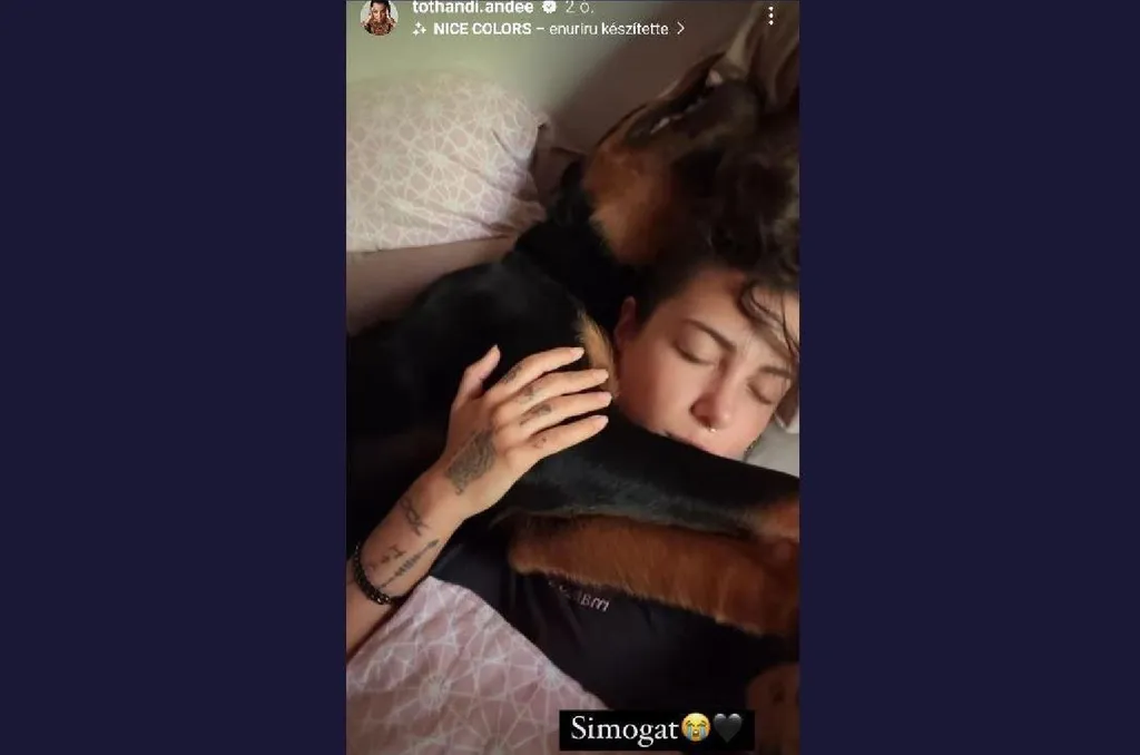 Vasárnap azonban az utóbbi volt soron, ugyanis a fiatal tehetség kutyusa simogatására ébredt, melyet egy 24 óráig elérhető Instagram-sztoriban dokumentált a követőinek.