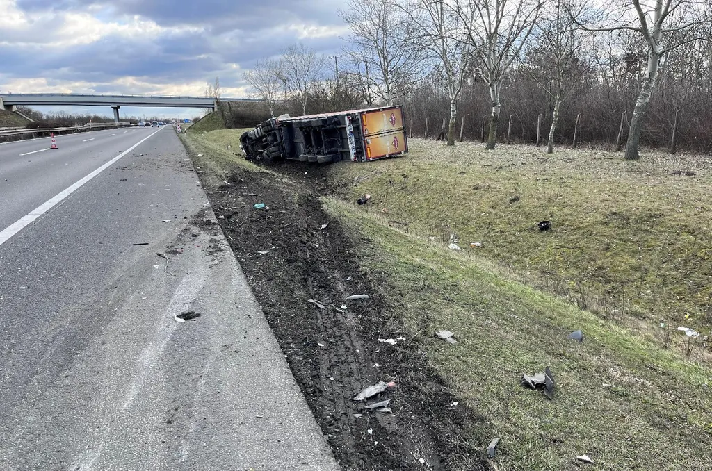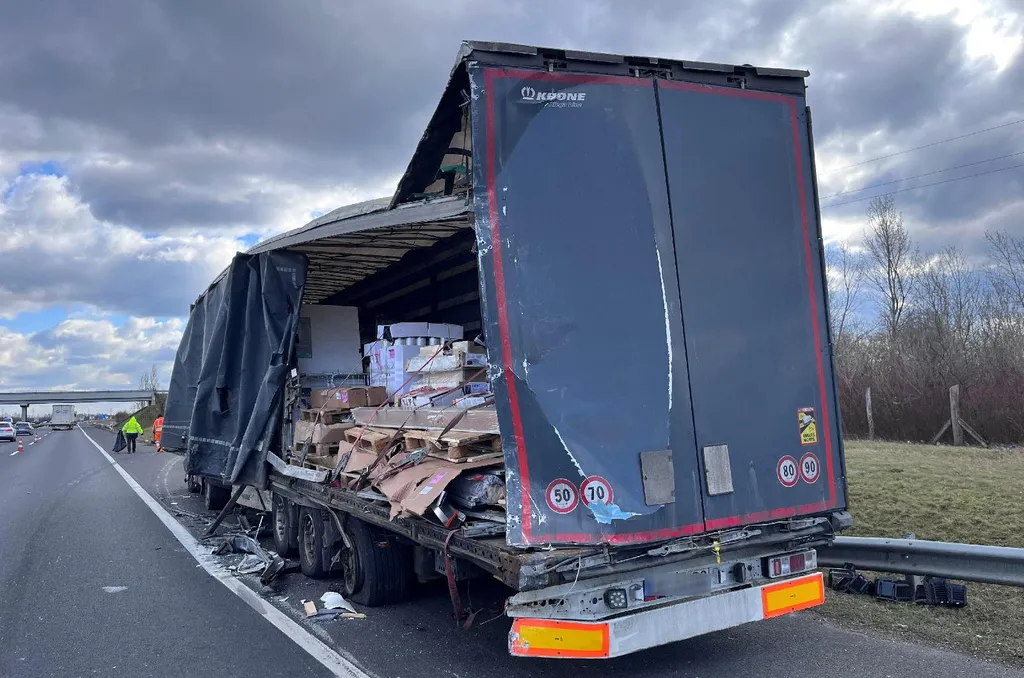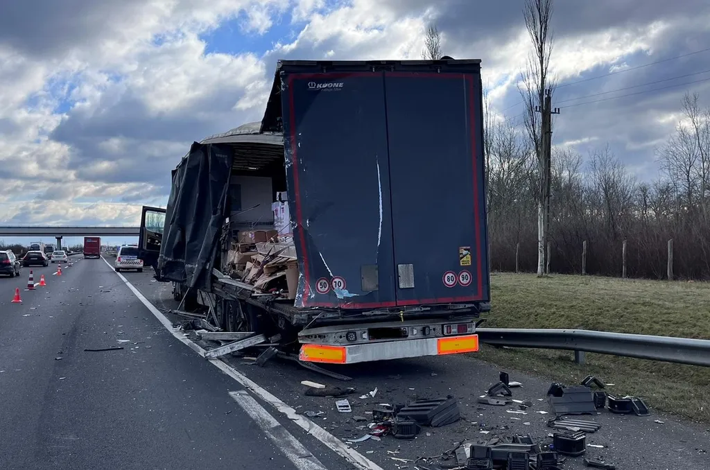 Kamionok ütköztek az M1-es autópályán, fotókon a baleset eredménye