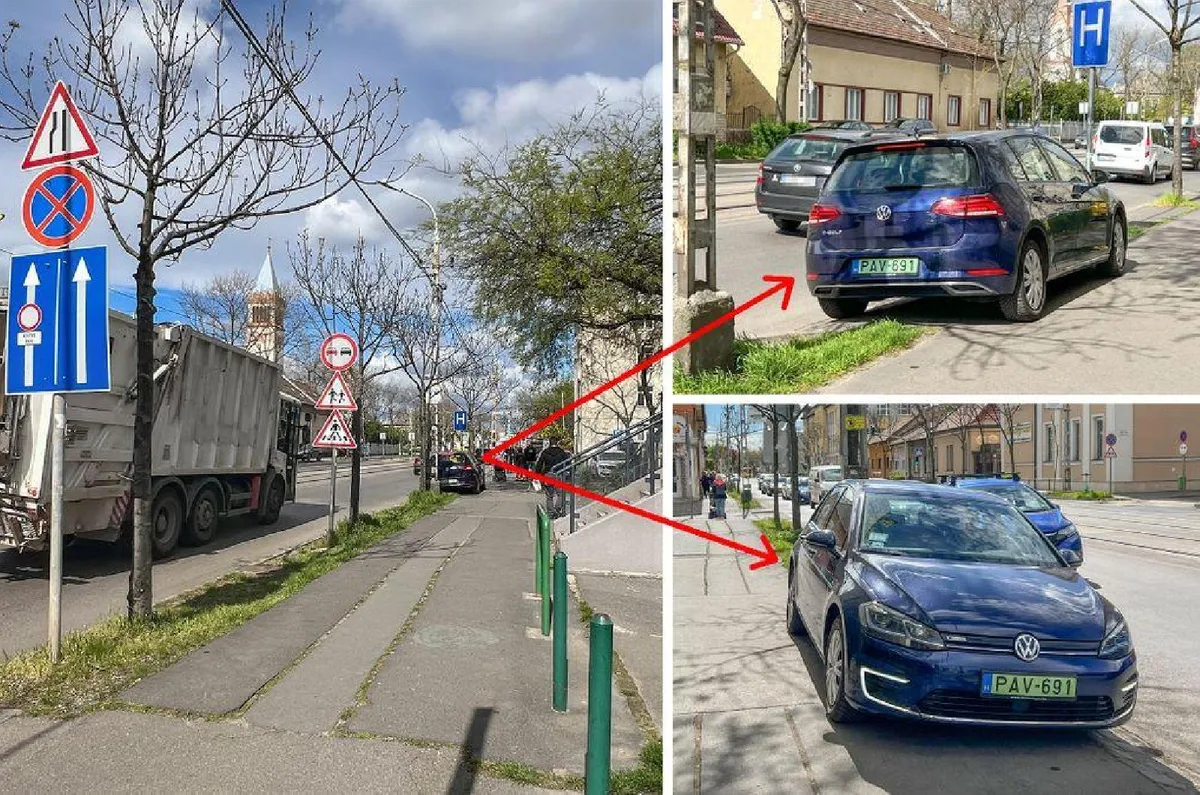 Karácsony autója egy megállni tilos tábla előtt, a járdára állt fel.