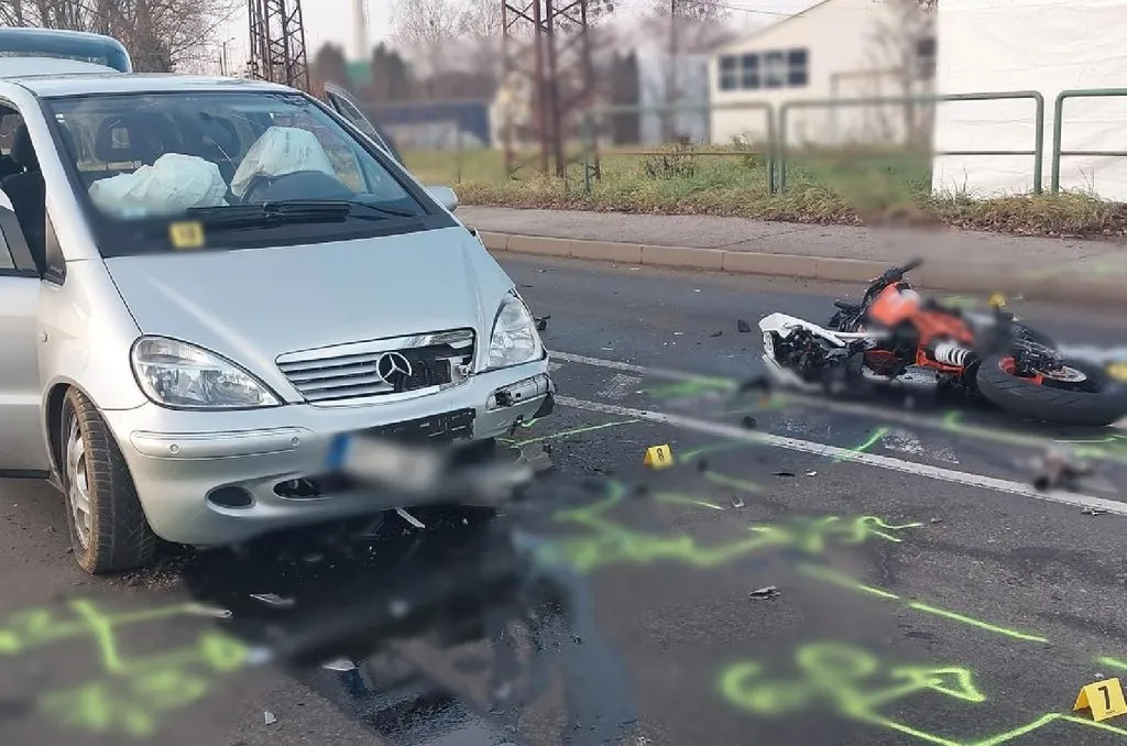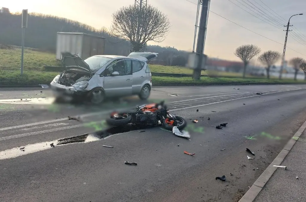 A fiatal motorosnak nem adott elsőbbséget egy autó 81 éves sofőrje, így összeütköztek.