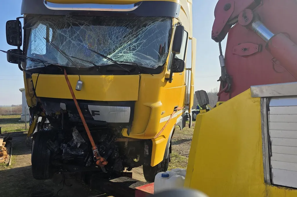 Két kamion ütközött össze Tiszapüspöki térségében a 4-es főúton szerdán.