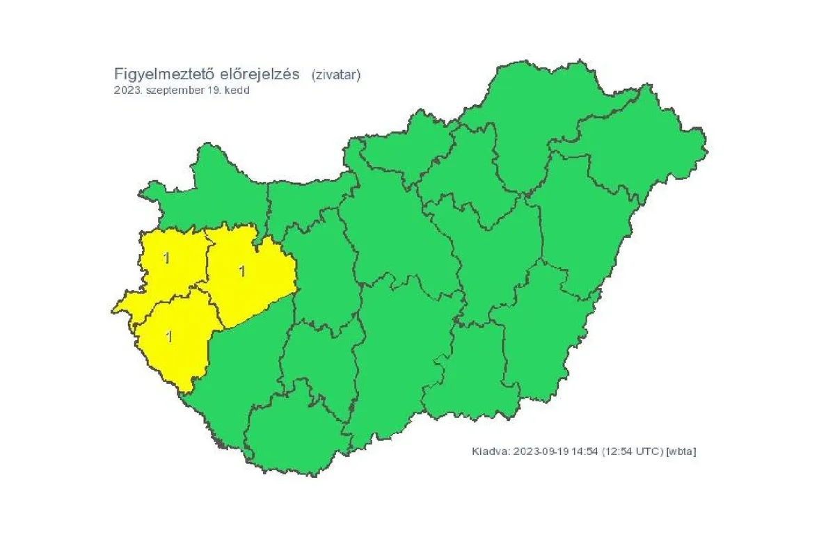 Három dunántúli vármegyére adott ki elsőfokú figyelmeztetést az Országos Meteorológiai Szolgálat – közölték a honlapjukon kedden délután.