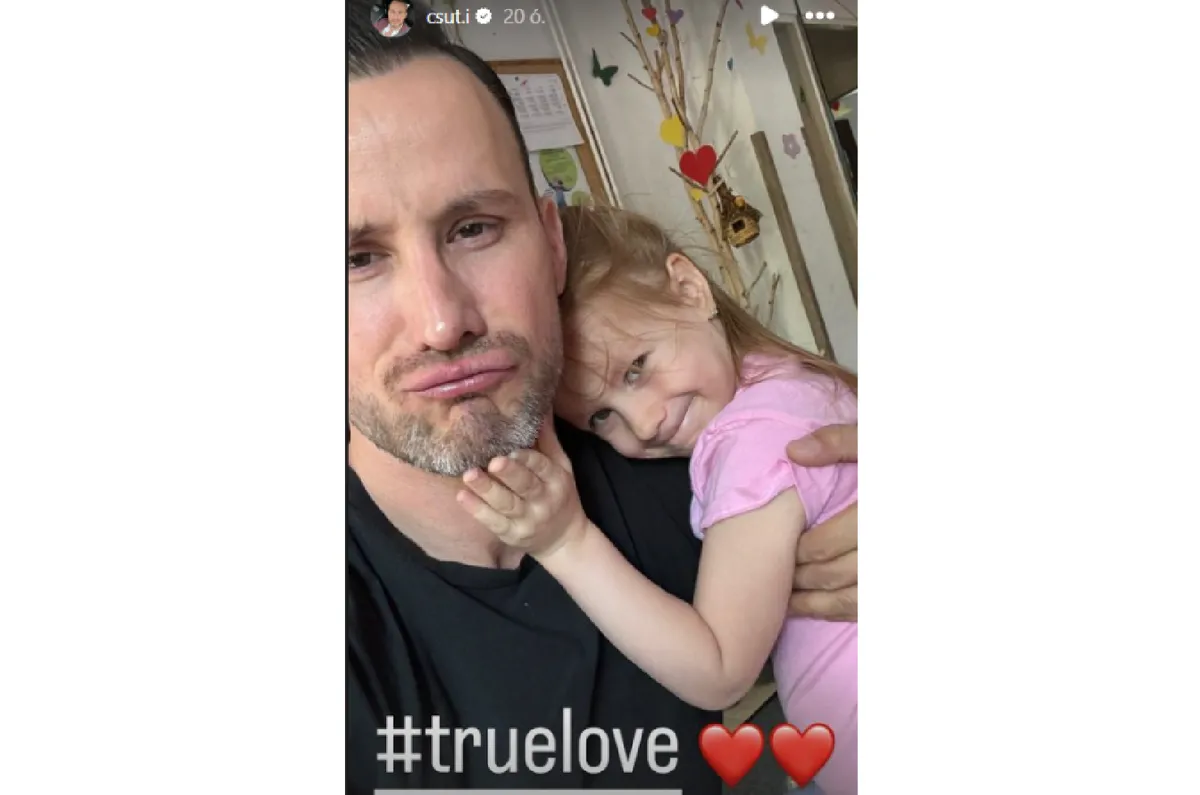 Csuti igyekszik minél több minőségi időt tölteni Ninával és Medoxal, örömteli pillanataikat pedig előszeretettel megosztja közösségi oldalán is. A kétgyermekes édesapa a minap egy ölelkezős képet tett ki 24 óráig elérhető Instagram-sztorijába, amelyen a kis Ninát tarja a karjaiban.