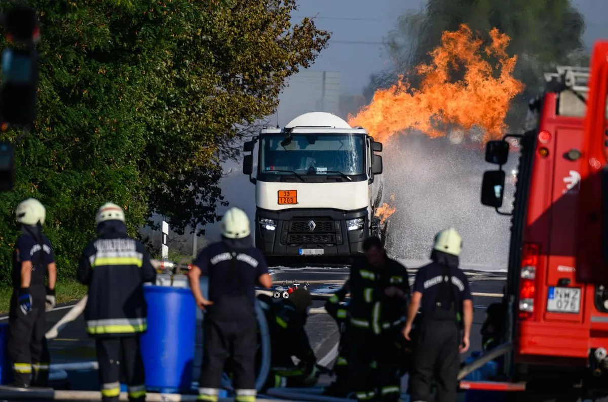 A tűzoltás idejére az érintett útszakaszt teljes szélességében lezárták - közölte a katasztrófavédelem.