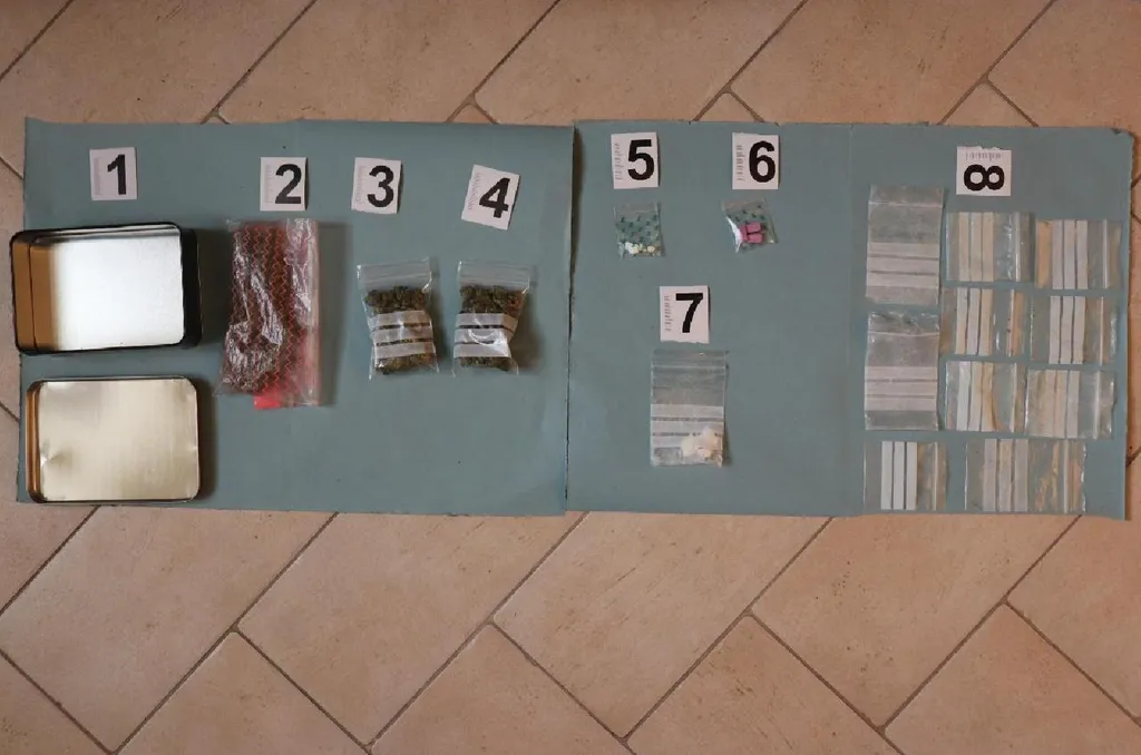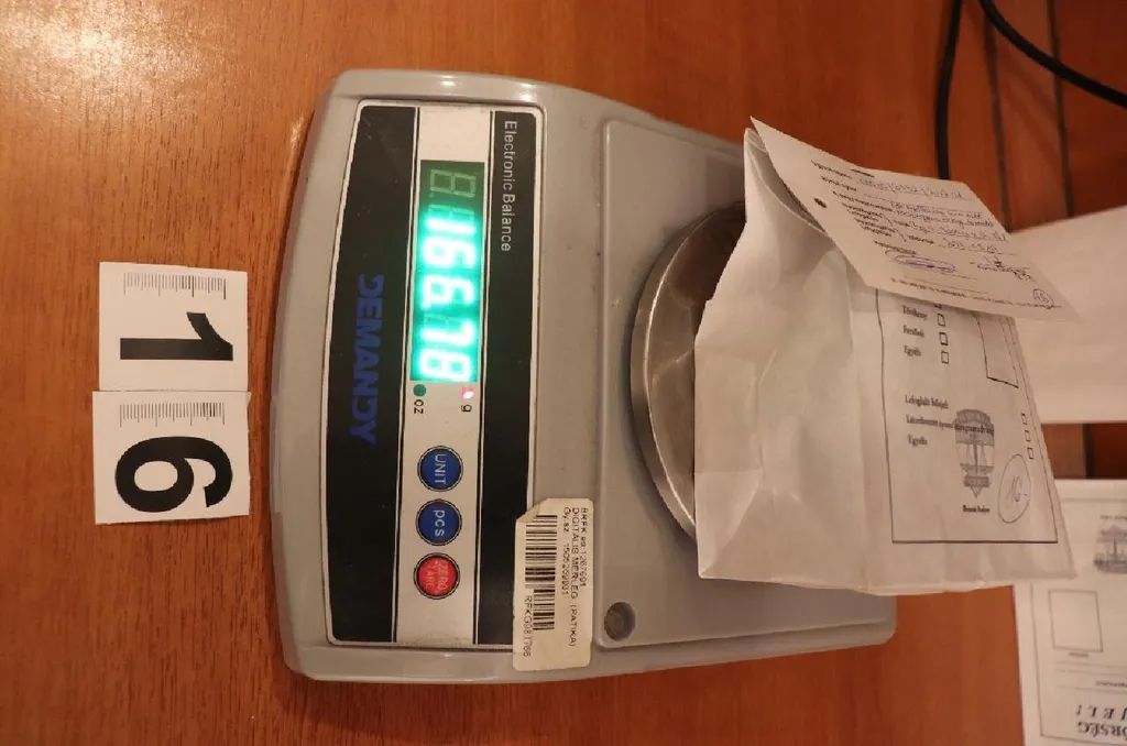 A lakásban tartott kutatás során többek között digitális mérleget, simítózáras tasakokat, valamint kiporciózva összesen 46 gramm növényi törmeléket (feltehetően marihuánát) és 26 gramm fehér színű kábítószergyanús anyagot foglaltak le. A lefoglalt anyagokat az eljárás során szakértő bevonásával vizsgálják.