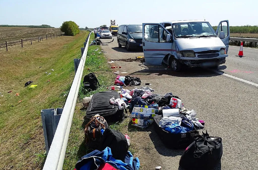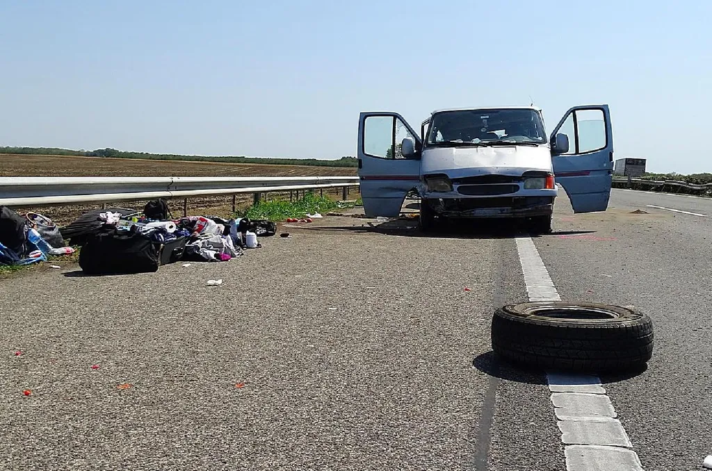 A főváros felé haladt a bolgár vendégmunkásokat szállító kisbusz, amikor információnk szerint kiszakadt a jobb hátsó kereke, ettől a belső-, majd a külső szalagkorlátnak csapódott, közben többször megpördült. A kisbuszban kilencen ültek, a hátsó ülésen lévő három nő kirepült a járműből, ők az árokba zuhantak.