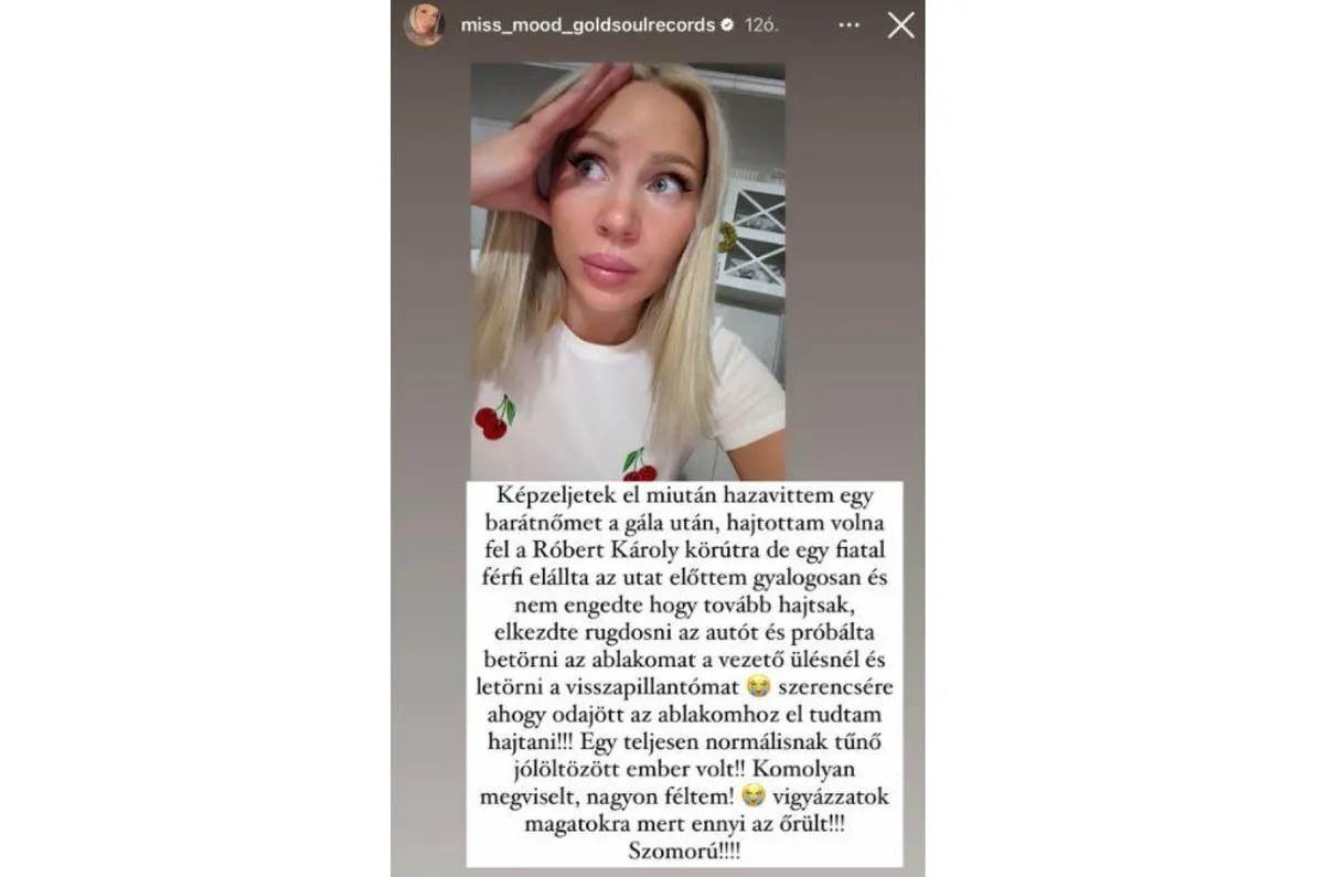 A nagyszabású rendezvény után azonban fordult a kocka, amikor Miss Mood szeretett volna felhajtani a Róbert Károly körútra, de egy jól öltözött járókelő akadályozta ebben.
