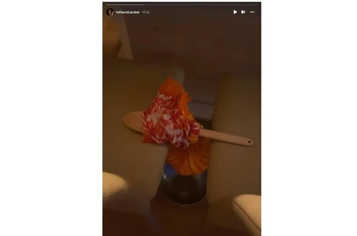 Az Instagram sztorijába feltöltött videón nevetve mutatja meg, hogy milyen frappánsan oldotta meg a tejsavó kicsepegtetését.