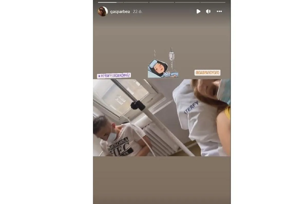Gáspár Bea a budapesti Péterfy Kórházból adott hírt magáról rajongóinak, ahová Győzike vitte be, aki aggódva ült az ágya mellett a felvétel készítésekor is.