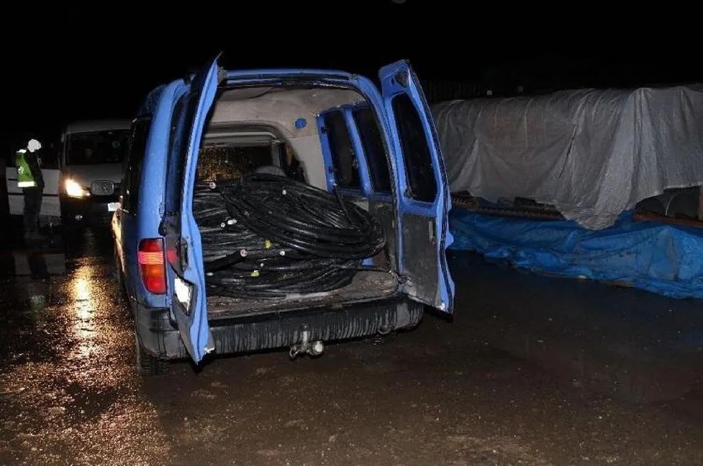 A kiérkező járőrök akkor figyeltek fel a tettesekre, amikor 70 méter hosszú kábel darabokat vittek ki a gyár telepéről és egy autóba pakolták azokat.