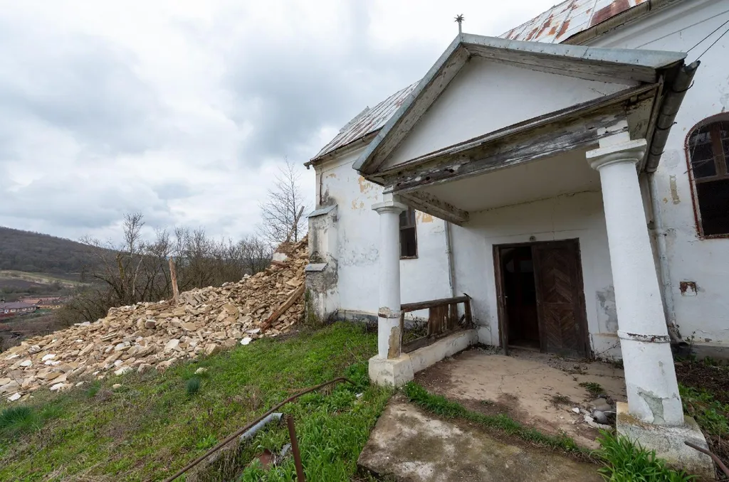A 18. században épült, használaton kívüli templom tornya szombaton késő este omlott össze, az esemény idején senki nem tartózkodott a közelében. A Beszterce megyei település református közössége 1691-ben épített sövényfalú templomot, melyet 1711-ben kőtemplommá alakított, majd 1800-ban újjáépített. A templom 1711-ben készült kazettás mennyezetet a szakemberek különösen értékesnek tartják.