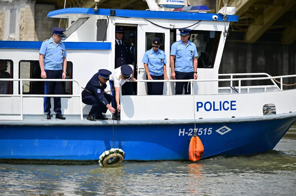 Ünnepélyes tiszteletadás keretében emlékeztek meg a Budapesti Rendőr-főkapitányság vezetői a Dunán történt hajókatasztrófa negyedik évfordulóján kedden. A Súgó nevű motoros hajóról egy koszorút dobtak a folyó vizére a Margit híd szomszédságában, így rótták le kegyeletüket az áldozatok előtt.