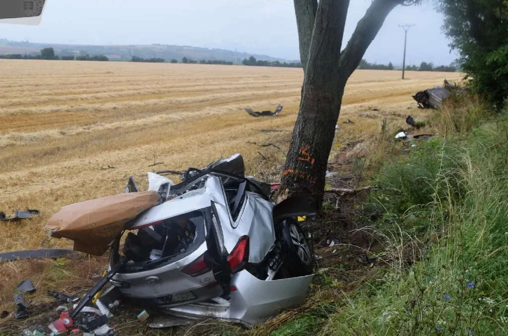Lesodródott az útról egy autó, egy fa kettévágta – Fotó