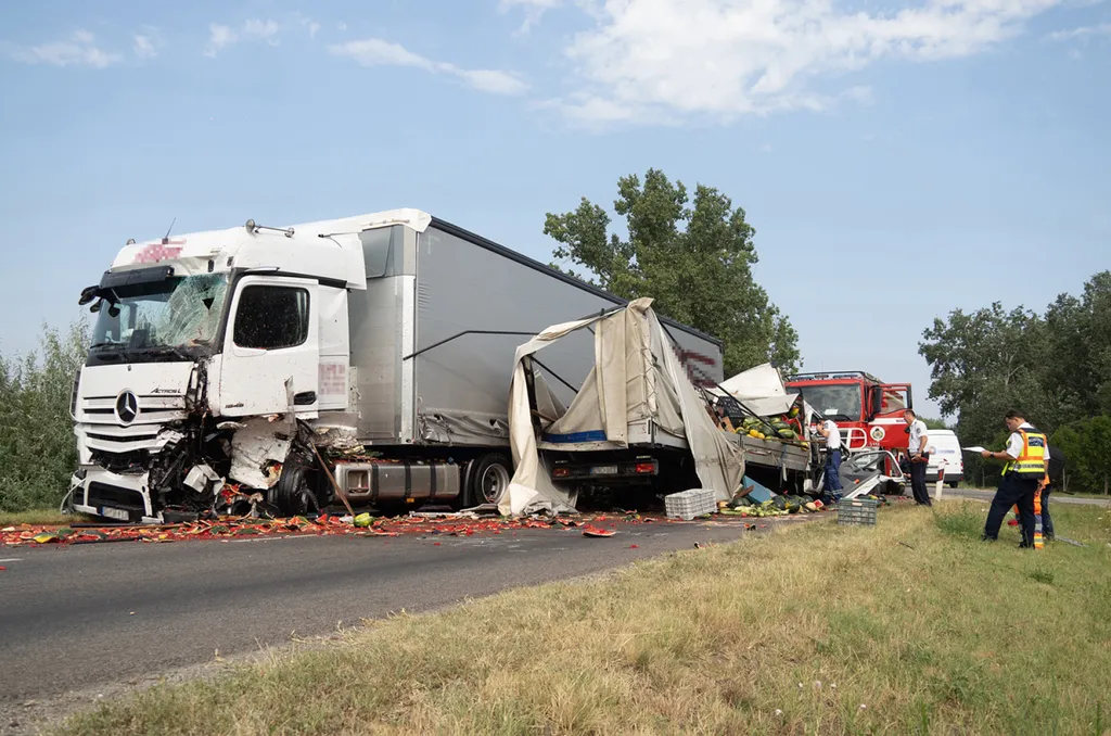Lesújtó fotók érkeztek az akasztói halálos balesetről, összetört dinnyék hevernek az 53-as főúton