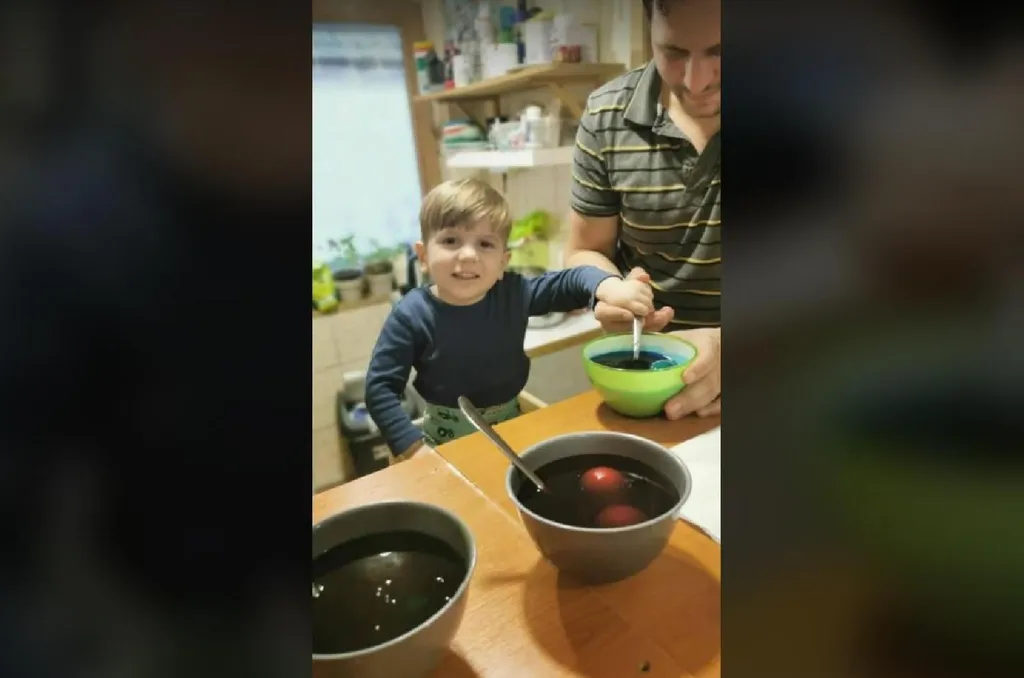 A kis Zente szülei a kisfiú Facebook oldalára töltötték fel a képeket, amin tojásokat festenek férfiasan az apukájával húsvét alkalmából.