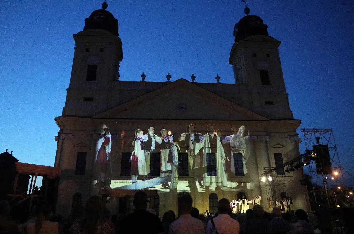 A Debreceni Református Nagytemplom előtt felállított három színpadon a Nemzeti Színház színművészei, a Magyar Nemzeti Táncegyüttes és a helyi néptáncegyüttesek - a Debreceni Hajdú Táncegyüttes, a Debreceni Népi Együttes, és a Főnix Néptánc Együttes - táncosai Berecz András mesemondóval együtt léptek fel.