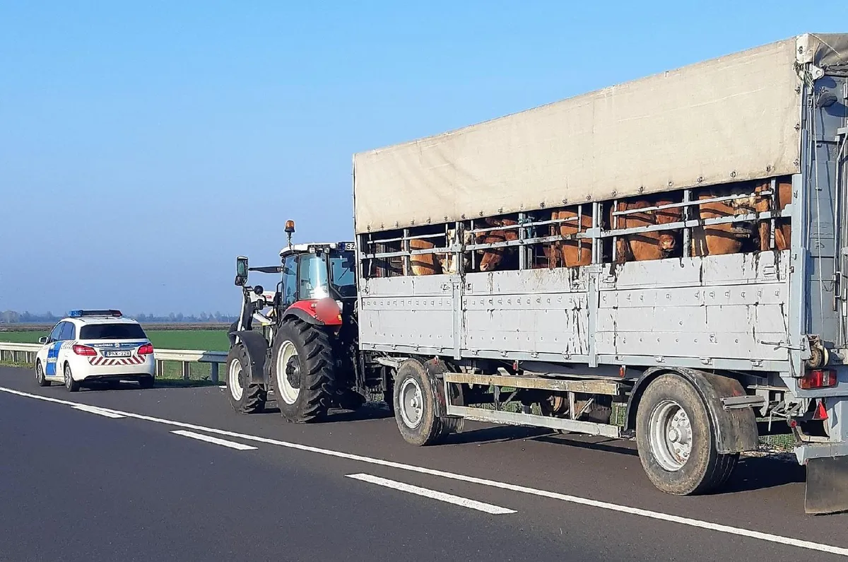 A rendőrök csütörtök délután az M35-ös autópályán észrevettek egy mezőgazdasági vontatót, ami Debrecen irányába tartott. A veszélyhelyzet elhárítása érdekében a járőrök lekísérték az autópályáról. Az intézkedés során kiderült, hogy az állatszállító traktor vezetője Derecske irányból tartott Debrecenbe, azonban az odavezető utat nem megfelelően választotta meg, így feltévedt az autópályára. Az egyenruhások helyszíni bírságot szabtak ki vele szemben – közölte a rendőrség.