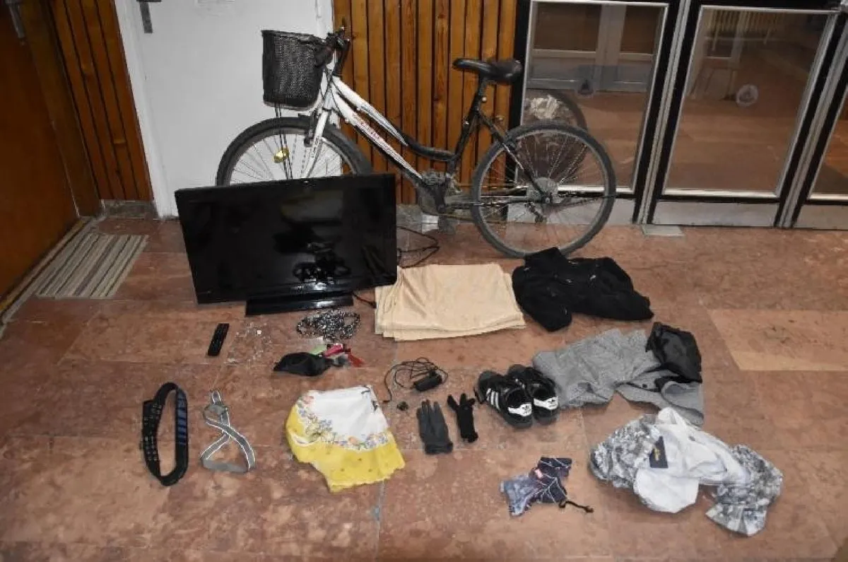 A rendőrök igazoltatták, majd kiderült, hogy a 23 éves helyi lakos lopta a nála lévő kerékpárt, televíziót, a ruhaneműket és az egyéb használati eszközöket egy lakóházból, miután oda az egyik ablakon bejutott – közölte a rendőrség.