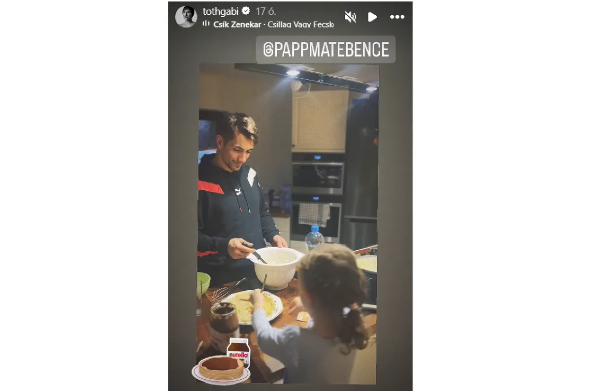 Gabi gyakran enged betekintést életébe, az énekesnő a minap párjáról és kislányáról osztott meg egy idilli pillanatot 24 óráig elérhető Instagram-sztorijában. A rövid kis videón Máté és Hannika éppen palacsintát süt.
