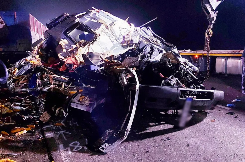 Hárman azonnal meghaltak, négy ember súlyosan megsérült, amikor a kamion és a kisbusz frontálisan ütközött.