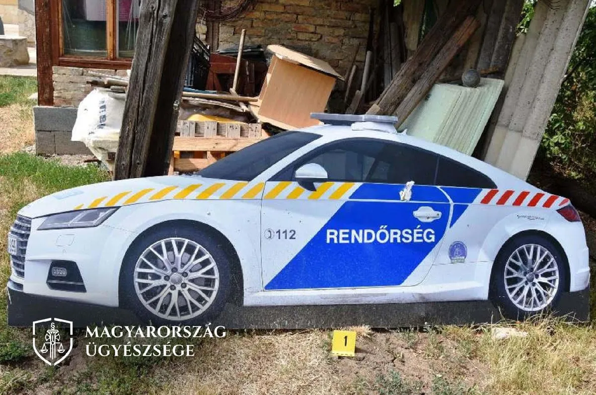 A rendőröknek a később itt sikerült rábukkanniuk az eltulajdonított bádog rendőrautóra - közölte - a Győr-Moson-Sopron Megyei Főügyészség sajtóközleményében.