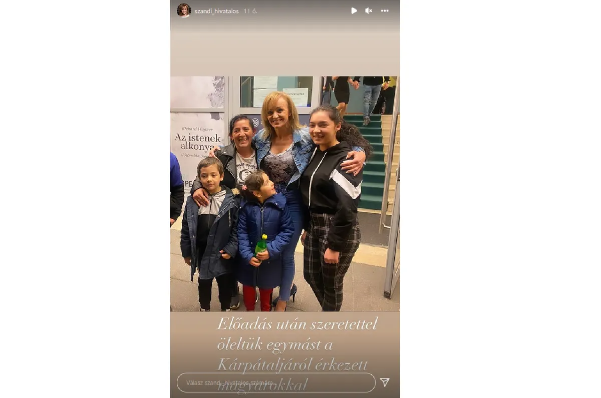 A szívszorító pillanatot Az Ég tartja Földet című musical után örökítették meg, ahová az énekesnő is meghívást kapott. Szandi már többször is hangsúlyozta mennyire fontos az, hogy segítsünk a bajbajutottakon, megteremtsük számukra azt a biztonságot, amire ebben a rendkívül szomorú és tragikus helyzetben szükségük van. Az előadás után lehetősége nyílt személyesen is találkoznia és beszélgetnie az érintettekkel, az orosz-ukrán háború elől menekülő kárpátaljai magyarokkal.