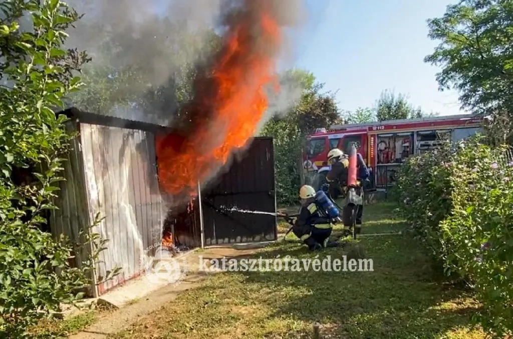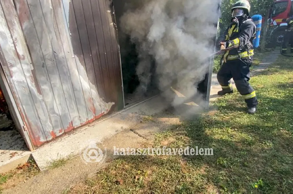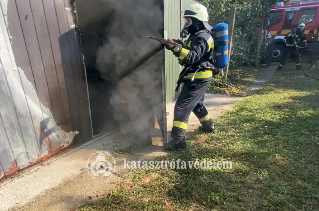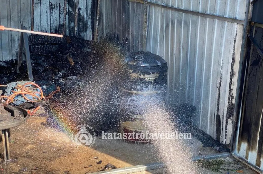 A szakemberek áramtalanították a tizennyolc négyzetméteres, lemezekből tákolt melléképületet. Előbb körülhatárolták, majd két vízsugár segítségével eloltották a lángokat.