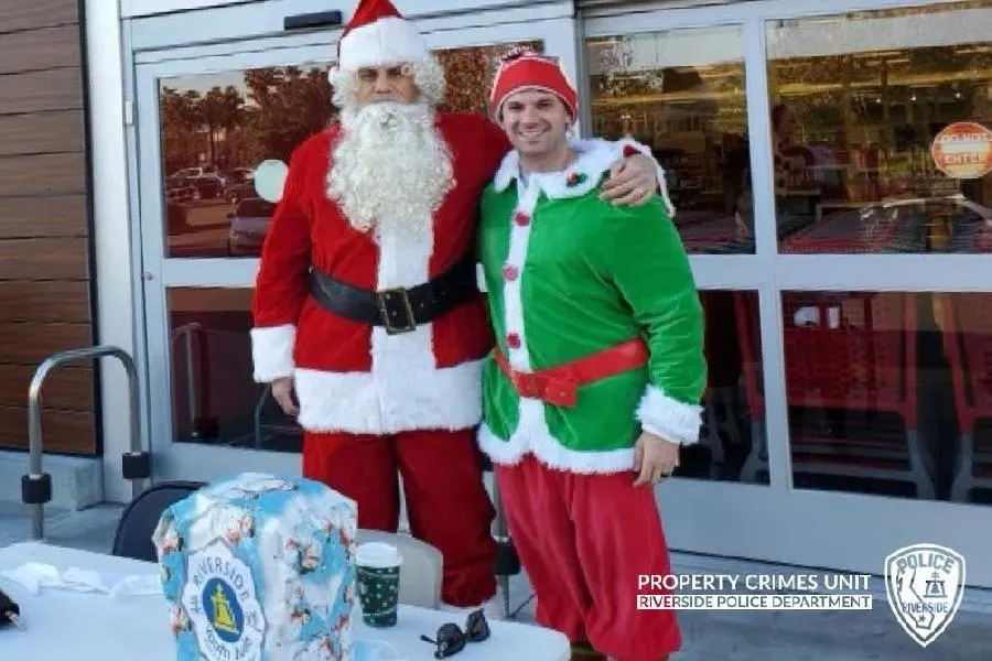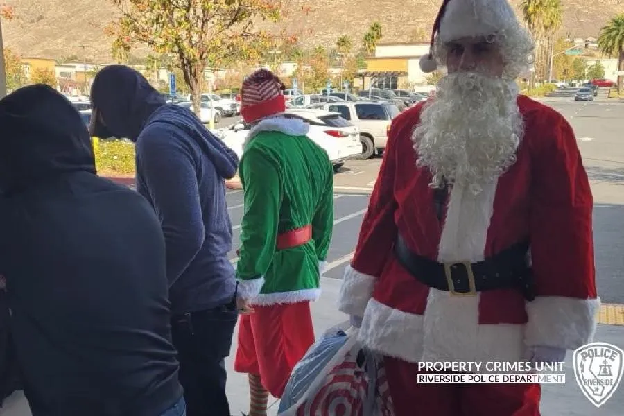 A kaliforniai Riverside nyomozói az "ünnepi végrehajtási program" keretében beöltözve figyelték a forgalmas bevásárlóközpontokat, hogy megakadályozzák a bolti lopásokat december 10-én.