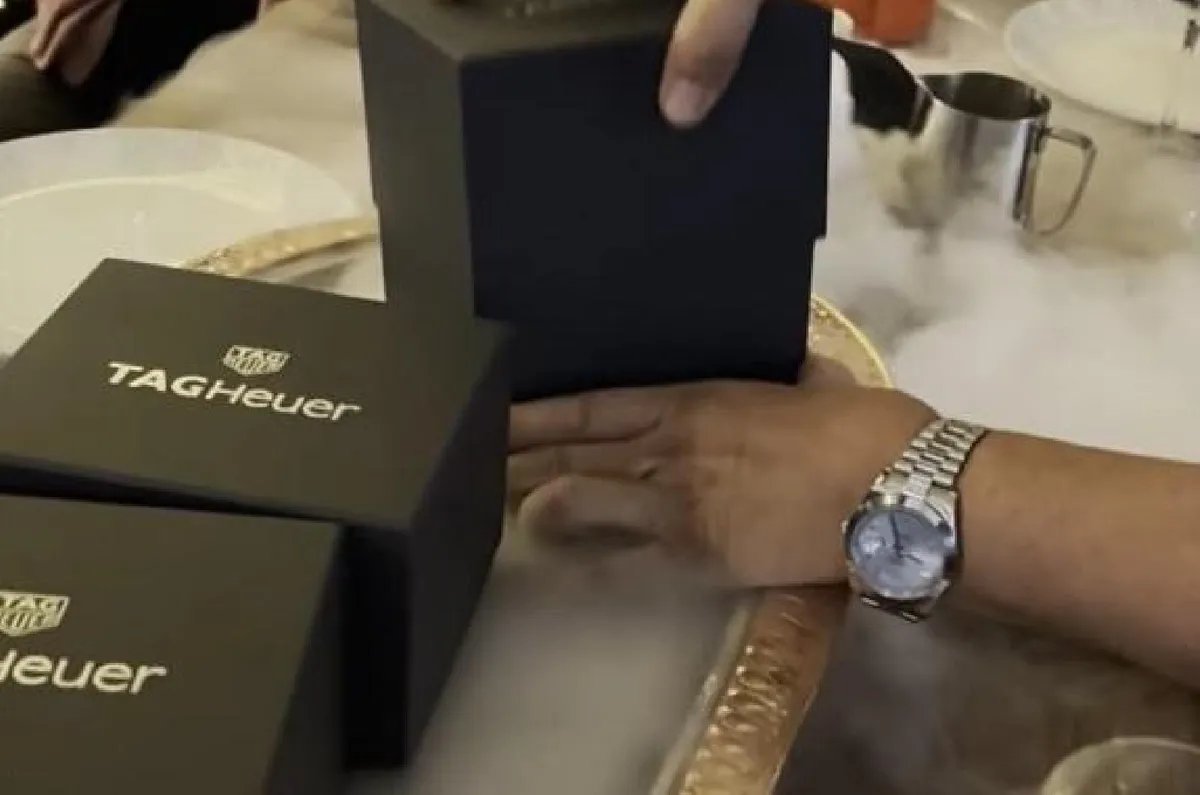 Maga az ajándék átadása is extravagánsra sikeredett, hiszen az órákat szép dobozaikban, szárazjégfüst kíséretében „szolgálták fel”.