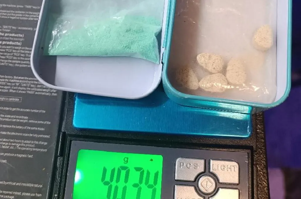 Az egyenruhások az ott lévő férfit elfogtak, majd házkutatást tartottak. Ennek során közel fél kiló zöld növényi és ugyanennyi por állagú kábítószergyanús anyagot, valamint több, üvegbe vagy dobozba tárolt tablettákat és folyékony anyagot is találtak. Ezek mellett a drog porciózásához, kereskedelméhez és fogyasztásához használt mérlegeket, szívószálakat, nejlon tasakokat, mobiltelefonokat és SIM kártyákat, laptopot, és közel egymillió forintot foglaltak le – közölte a rendőrség.
