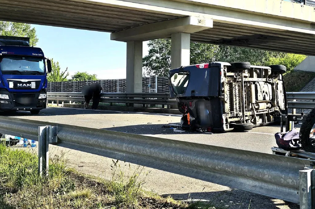 Motorok repültek, kisbusz, kamion is tört, egy kocsi felborult az M5-sön - Fotók