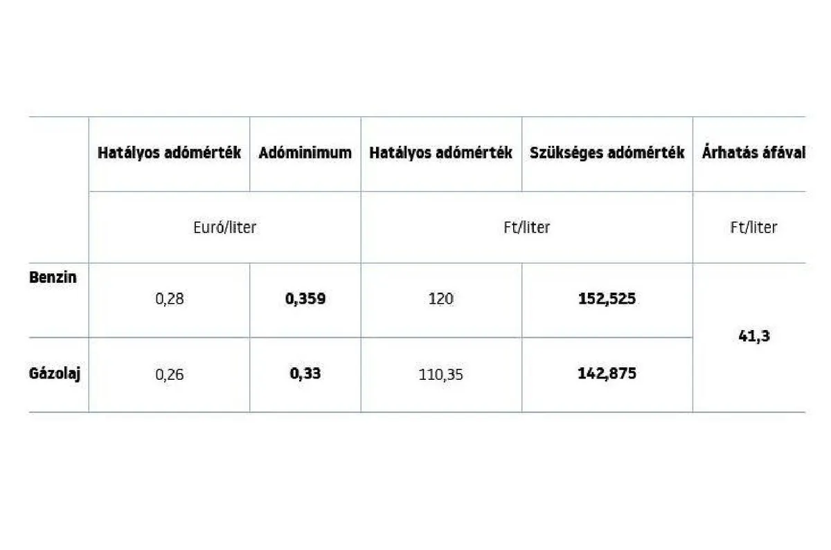 A kétféle üzemanyagra eltérő uniós adómértékek vonatkoznak. Hazánk a benzin esetében évek óta a minimumértékre állítja be a magyar adószintet, és fix távolságot tart a benzin és a gázolaj adómértéke között.