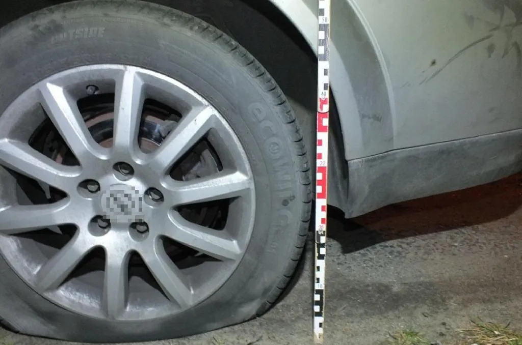 A férfi tartotta a szavát, ugyanis első körben öt, utcán parkoló autó kerekét szúrta ki, egyiknek a szélvédőjét is ripityára törte. Nem sokkal később a helyi rendőrség épülete előtt parkoló szolgálati autó kerekének is nekiesett, azt azonban hiába döfködte, nem lyukadt ki, így tovább ment.