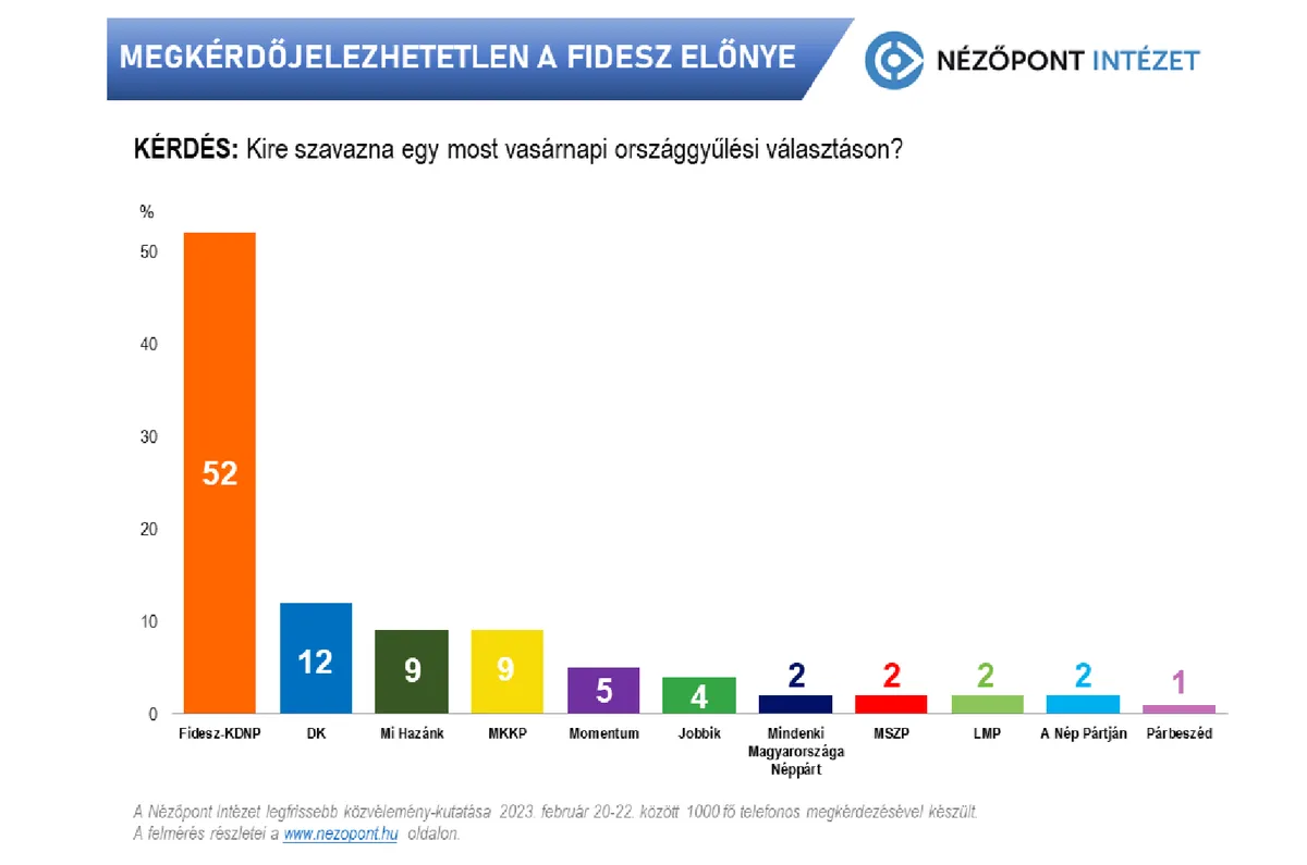 Nem érnék el a küszöböt a baloldali összefogás parlamenten kívüli szereplői sem: Márki-Zay Péter volt baloldali miniszterelnök-jelölt pártja, a Mindenki Magyarországa Néppárt, valamint Jakab Péter, a Jobbik volt elnökének A Nép Pártján nevű szervezete egyaránt kétszázalékos támogatottságú a Nézőpont Intézet mérése szerint.