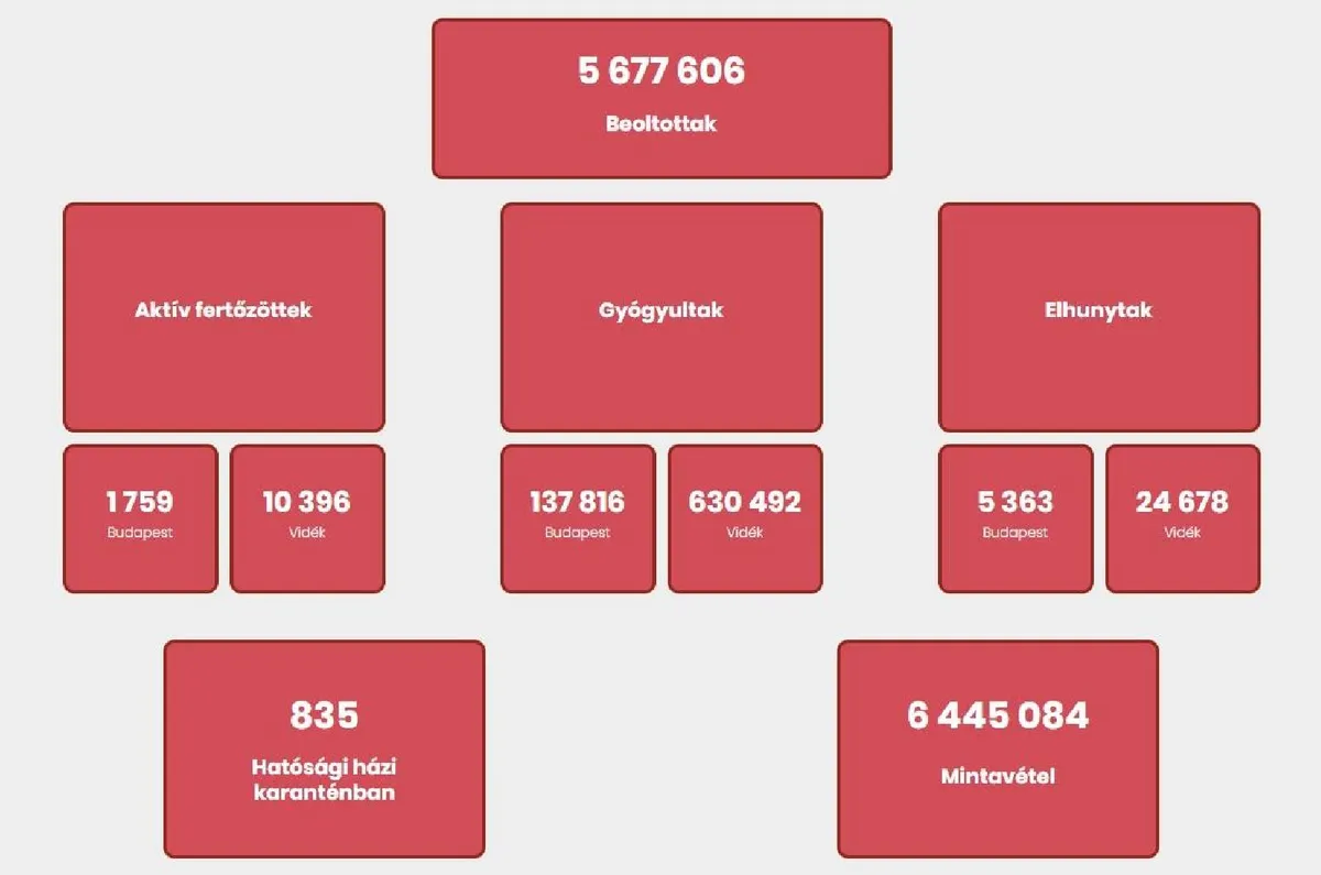 Hatósági házi karanténban 835-en vannak, a mintavételek száma 6 445 084.