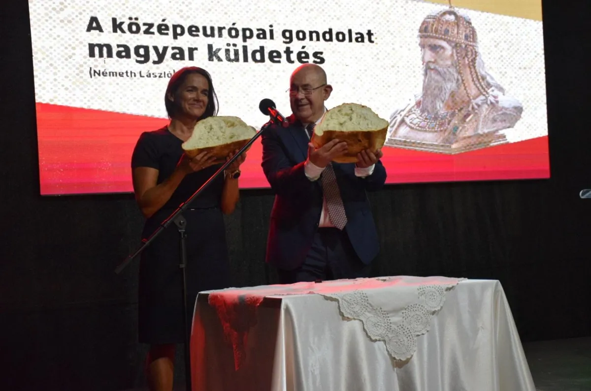 Kiemelte: "azért lehet otthon egy szegedi Zentán, egy debreceni Nagyváradon, egy mátészalkai Szatmárnémetiben, egy mosonmagyaróvári Dunaszerdahelyen, mert ugyanahhoz a nemzethez tartozunk, egy nyelvet beszélünk, közös a múltunk, közös a jelenünk, és azt akarjuk, hogy a jövőnk is közös legyen". És mikor kérdezzük meg - folytatta -, ha nem éppen Szent István ünnepén, hogy miként tehetjük megkérdőjelezhetetlenné ezt a nemzeti összetartozást.
