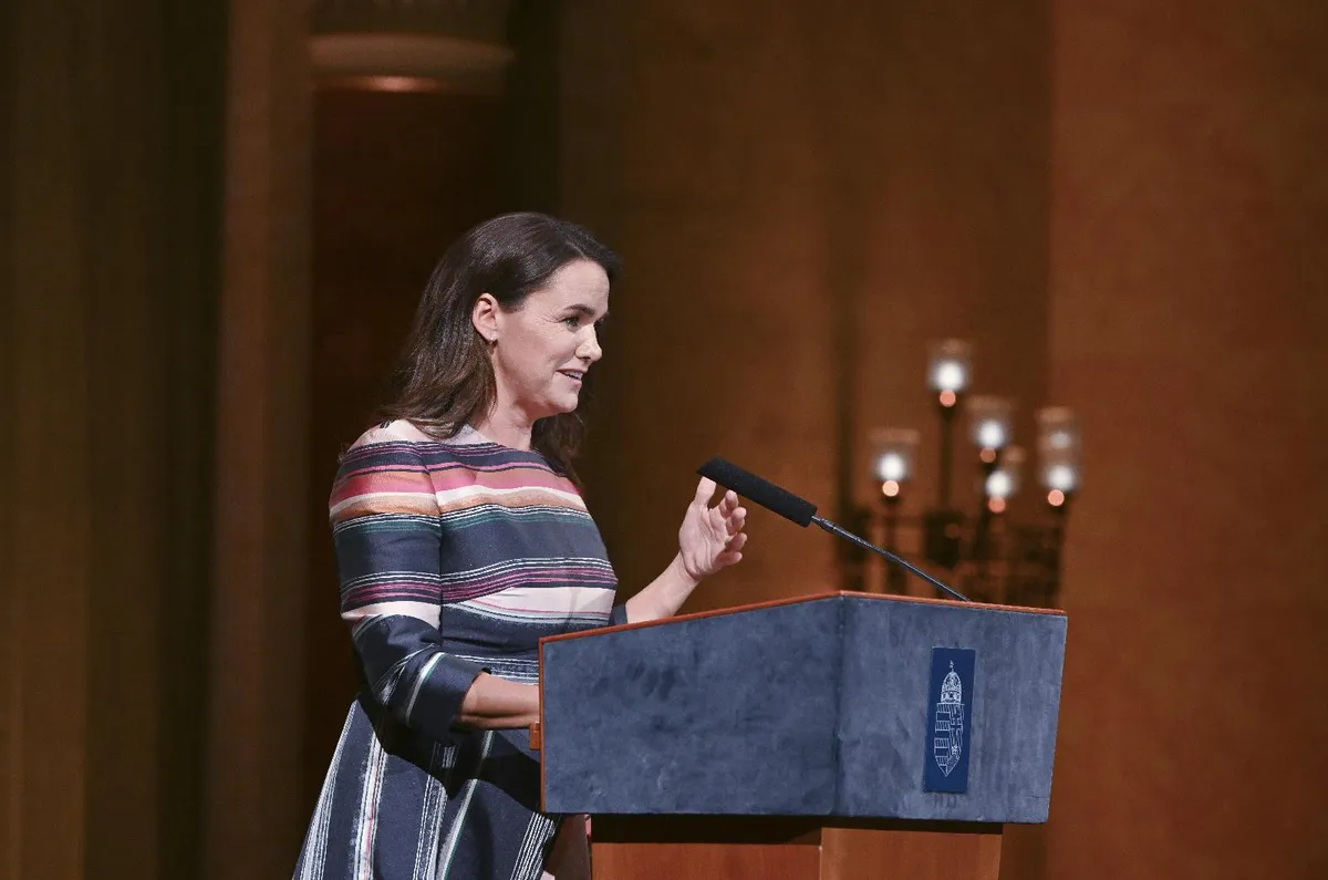 Novák Katalin kitért arra, hogy a díszvacsorára meghívták a Stipendium Peregrinum ösztöndíjasait, akik a magyar állam támogatásával a világ legjobb egyetemein tanulhatnak, és olyan fiatal nők is jelen vannak, akiket inspirálhat és megerősíthet az első magyar Nobel-díjas nő sikere.