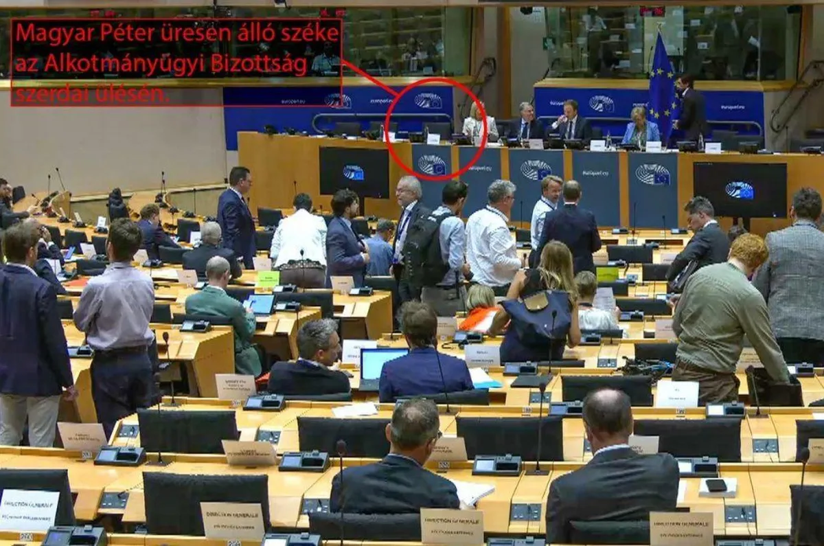 Az Alkotmányügyi Bizottság (AFCO) szerdán tartott első rendes ülésén Magyar Péter széke látványosan üresen maradt a pulpituson, holott ő a testület 4. alelnöke.