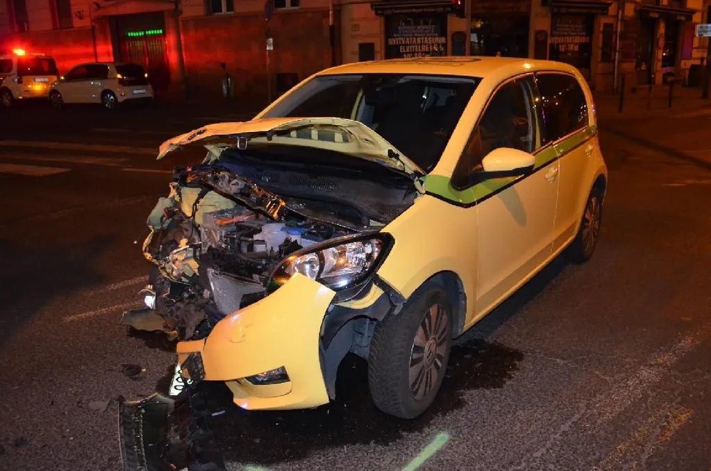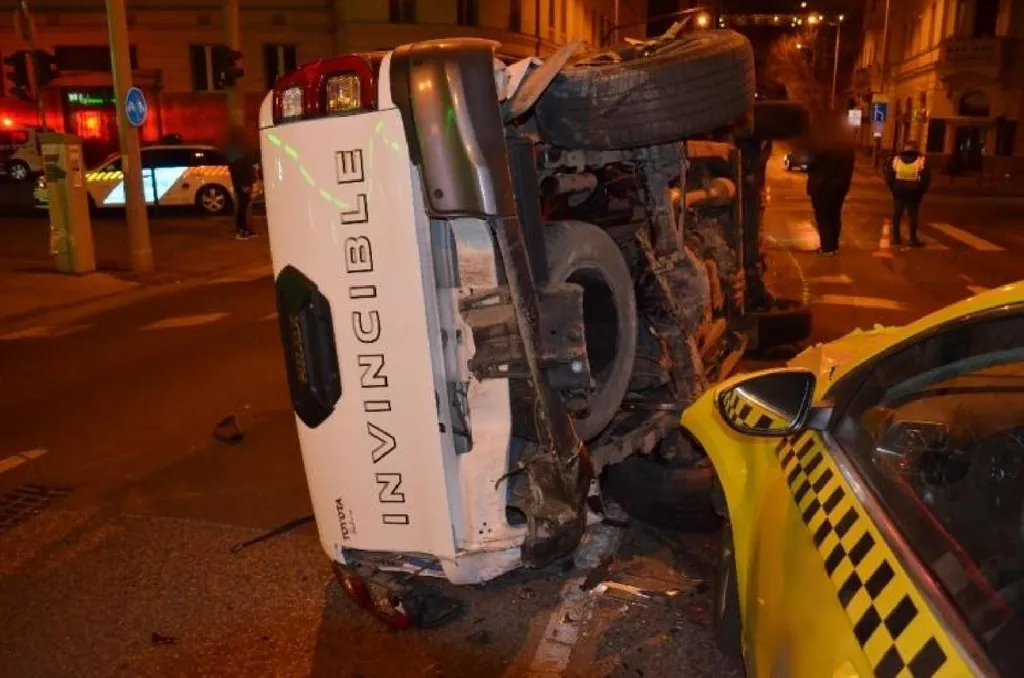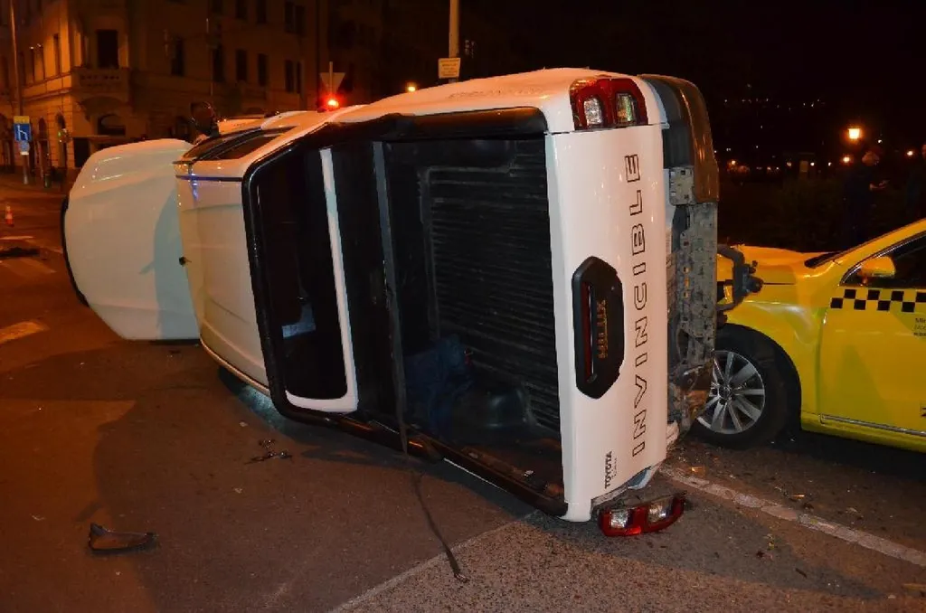 A menekülő autó azonban az I. kerületi Attila út és Alagút utca kereszteződésben áthajtott egy piros lámpán, majd nekicsapódott egy másik kocsinak. Ezt követően felborult, miközben egy taxinak is nekicsúszott.