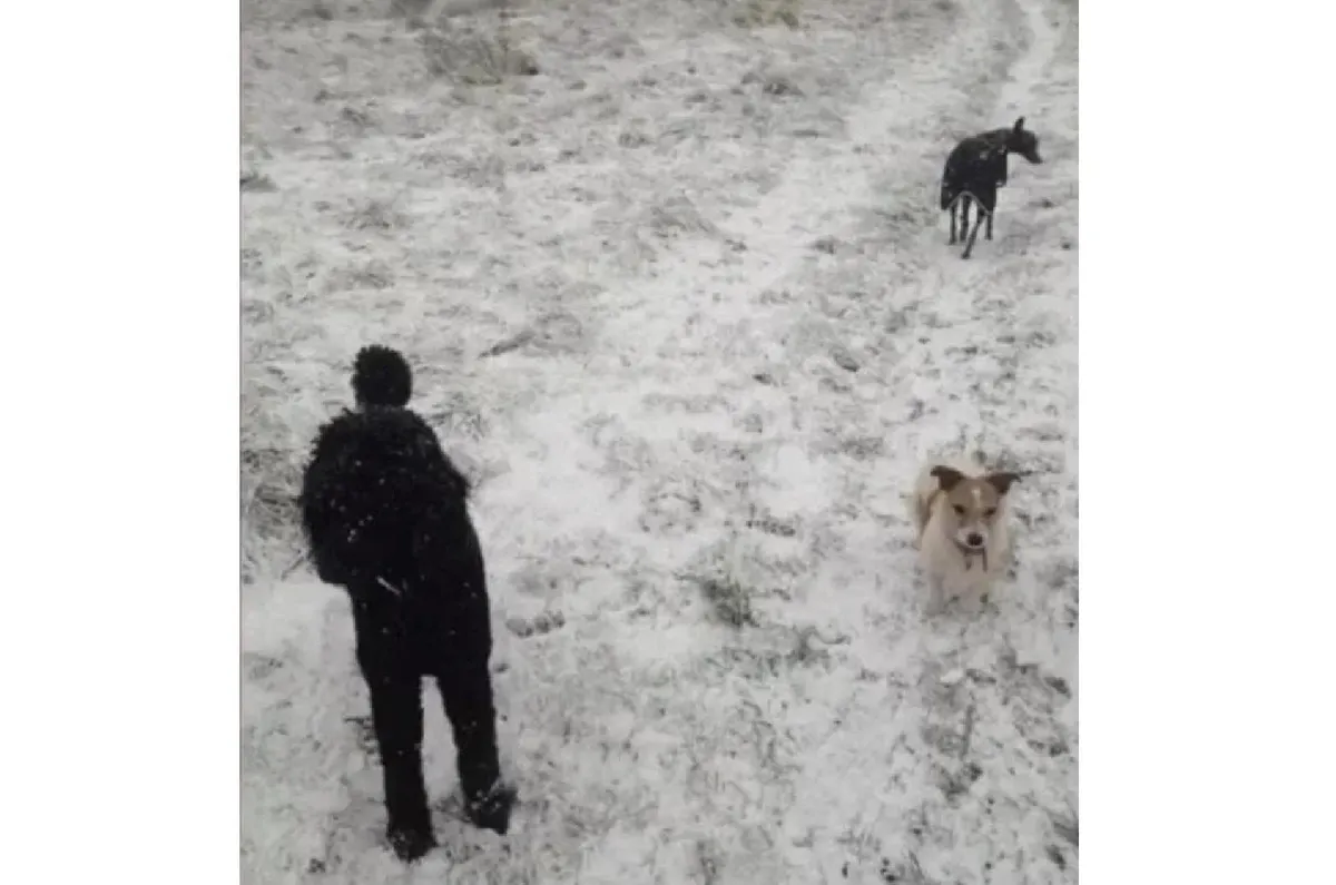A képen két kutya látható, akik téli sétára indultak, és láthatóan élvezik is a hóban való kóborlást. A feltöltő azonban hozzátette, hogy a fotón három eb van, és ez sokaknak komoly fejtörést okoz.