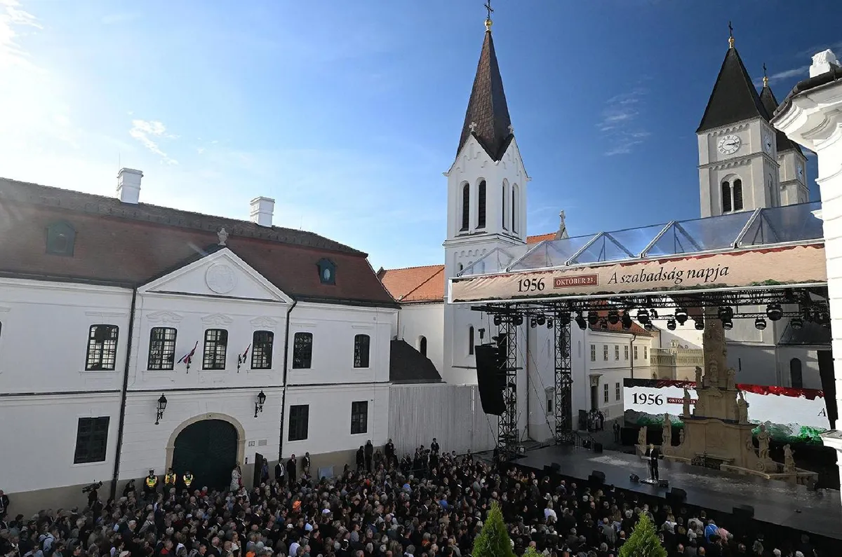 Kijelentette: az '56-osok áldozata csak akkor nyer értelmet, ha a magyar szabadságot mi is védjük, éljük és örökül hagyjuk. "Ők akkor nem haltak meg hiába, ha mi nem élünk hiába. Ha olyasmit adunk a világnak, amit csak mi adhatunk" - fogalmazott a kormányfő, aki szerint Veszprém, mint Európa kulturális fővárosa éppen ezt teszi, megmutatja egész Európának, milyen is a magyar kultúra, milyen is a szabadság, ha magyar.