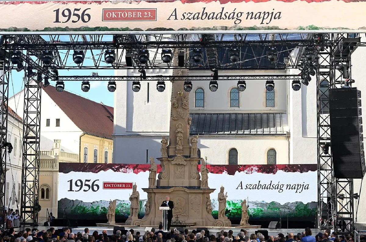 A magyar ezért szabadságharcos nemzet és a magyar nemzet életstratégiájának lényege éppen az, hogy "mi minden megszálló birodalom sírjánál ott állunk" - fűzte hozzá, kiemelve: 1956 győzött, és "mi visszacsatlakoztunk az európai népek közösségébe", ez is része a történelmi elégtételnek.